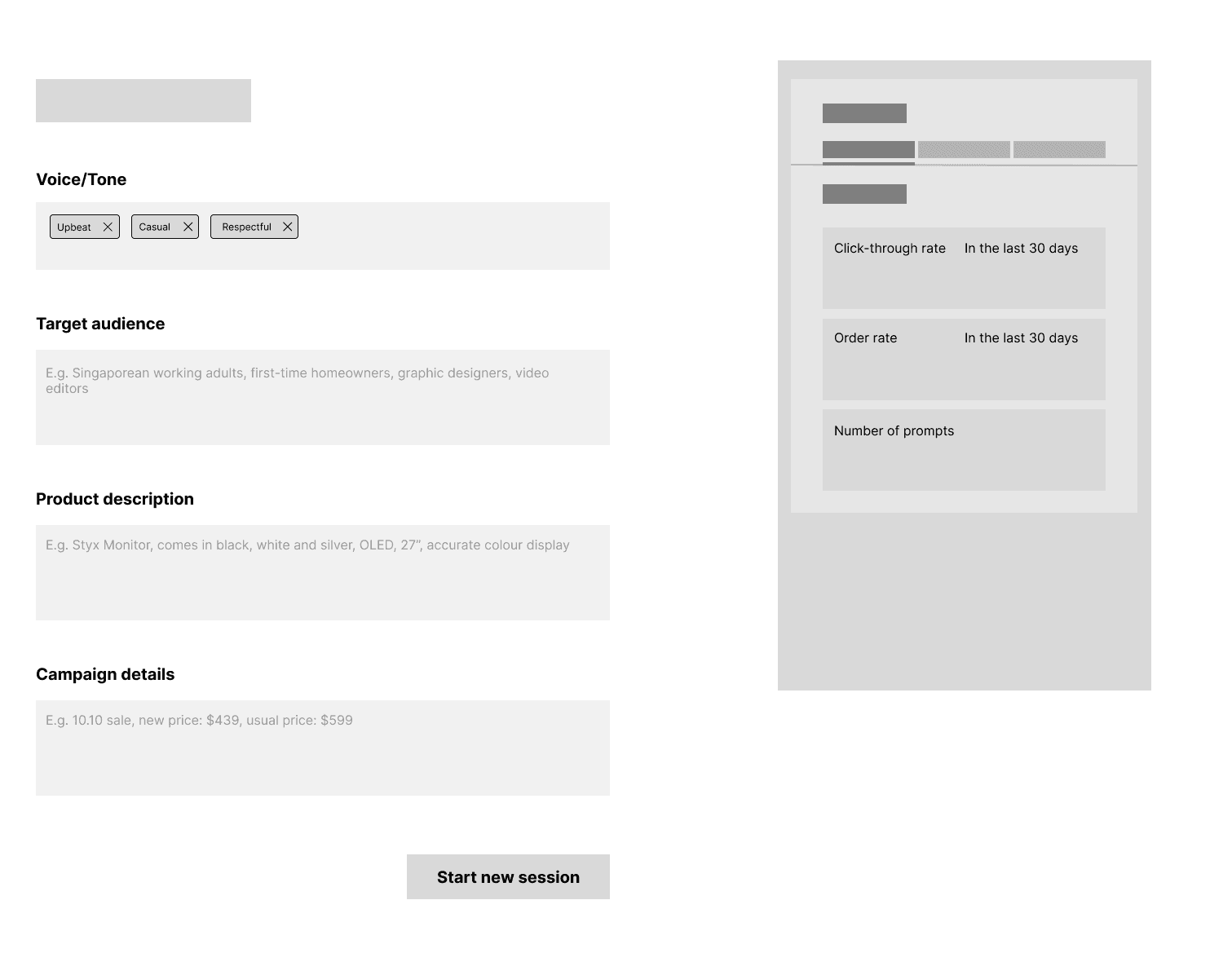 Wireframe 2: Desktop, Prompt Creator view
