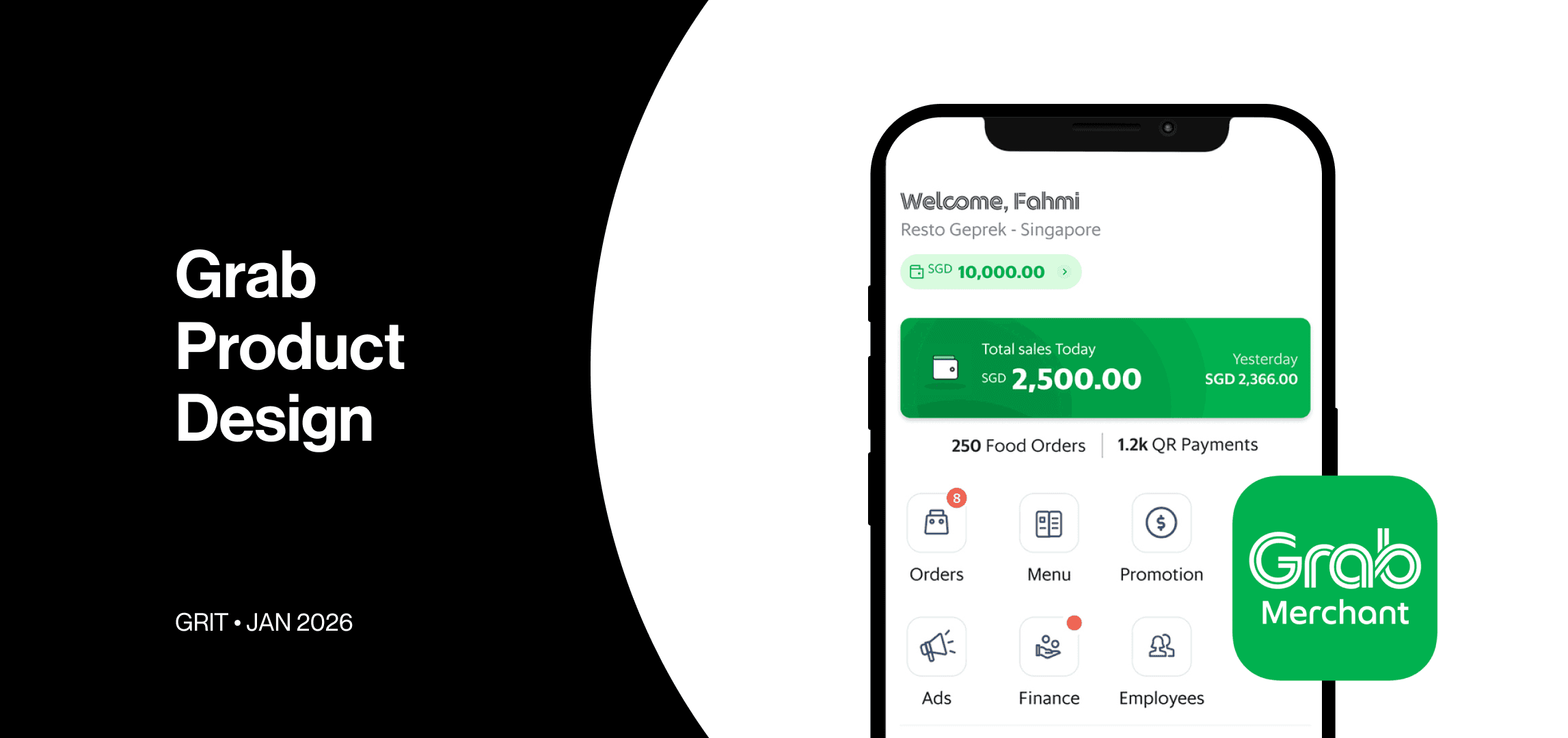 From Jan 2026, I've been a trainee with Grab's product design team, designing for the GrabMerchant app.